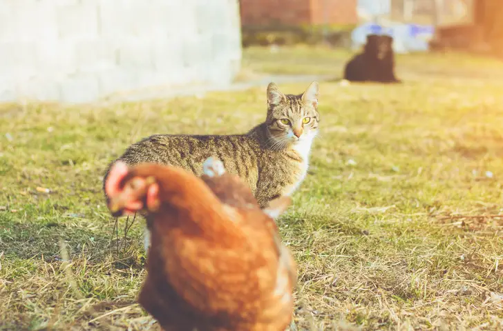 No, cats will not attack chickens. Cats are predators, but they do not typically hunt and kill chickens. Chickens are usually much larger than mice